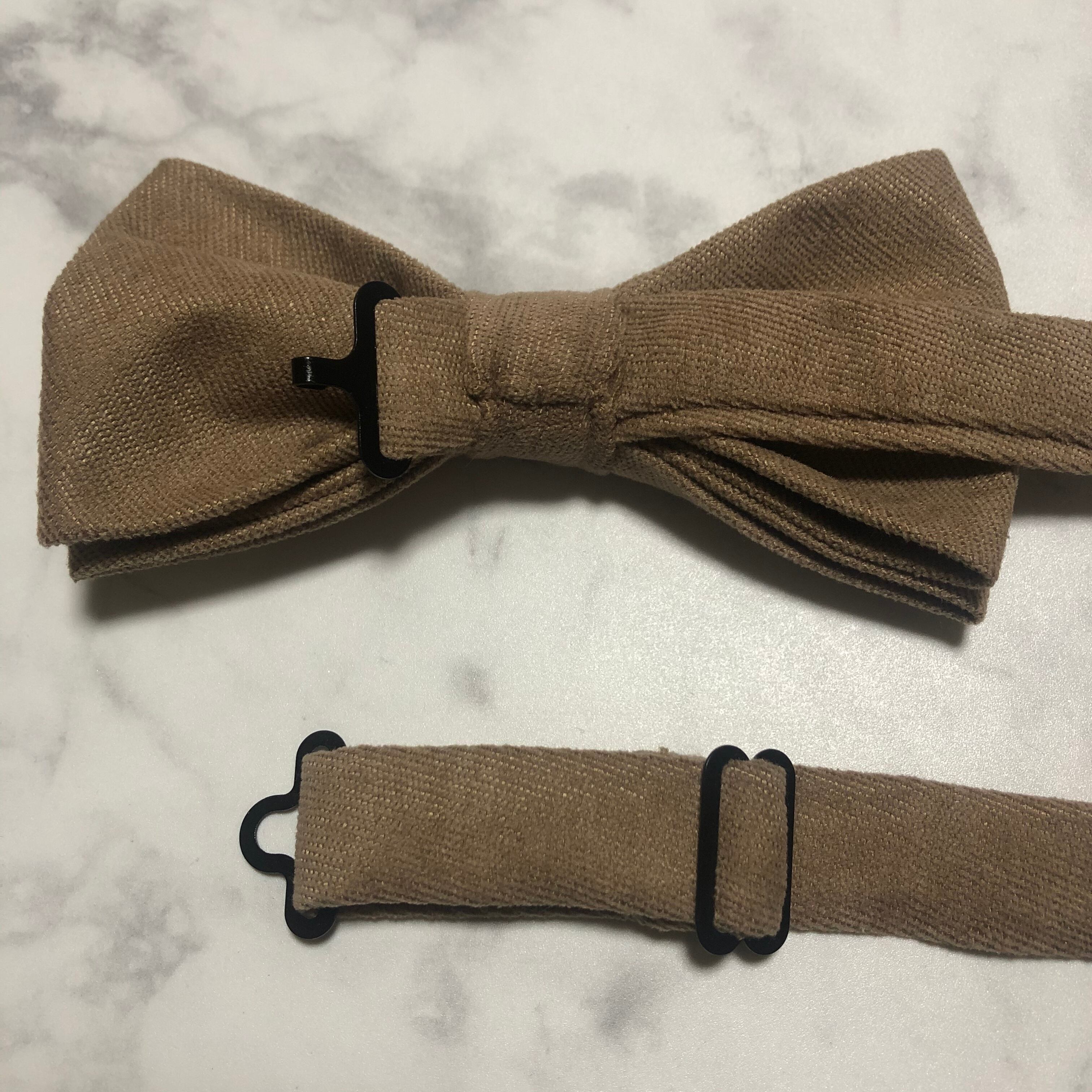 蝶ネクタイ ポケットチーフ 2点セット 結婚式 無地 ベージュ